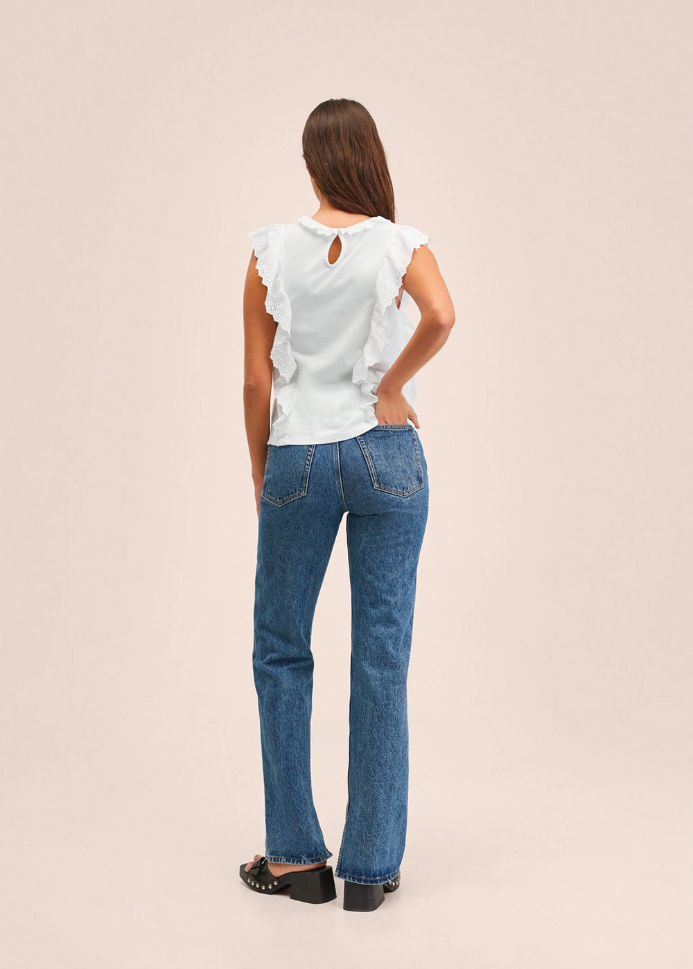Cotton-blend fabric. Textured fabric. Long design. Evasé design. Wrap collar. Puffed short sleeve. Front slit. Knot detail. Bow closing on the back. Button fastening at back.