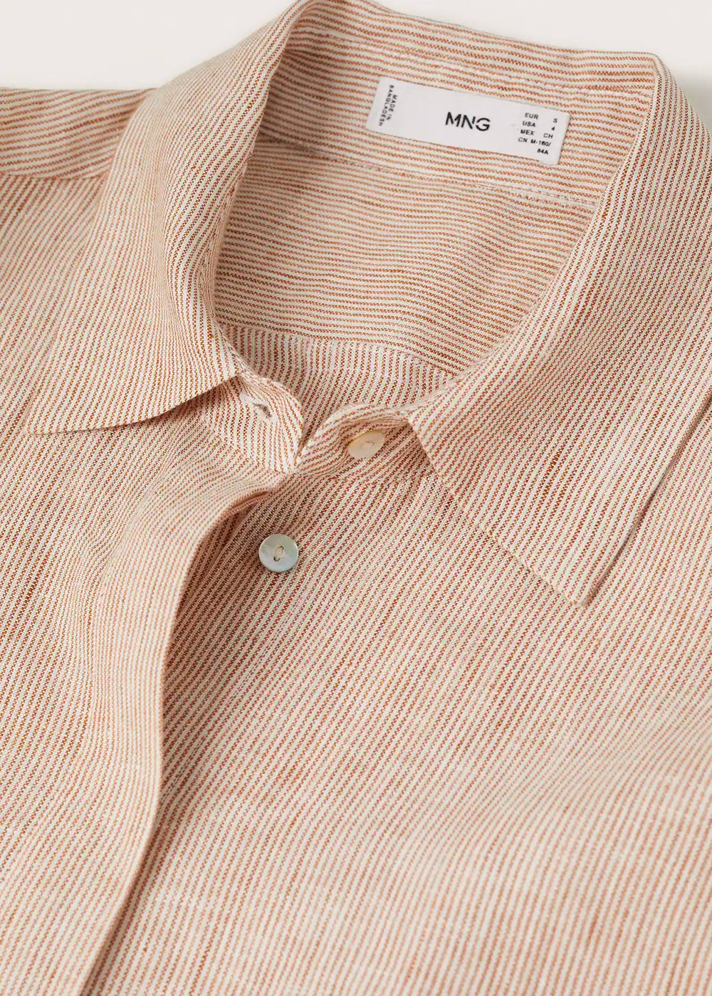 Cotton-blend fabric. Textured fabric. Long design. Evasé design. Wrap collar. Puffed short sleeve. Front slit. Knot detail. Bow closing on the back. Button fastening at back.